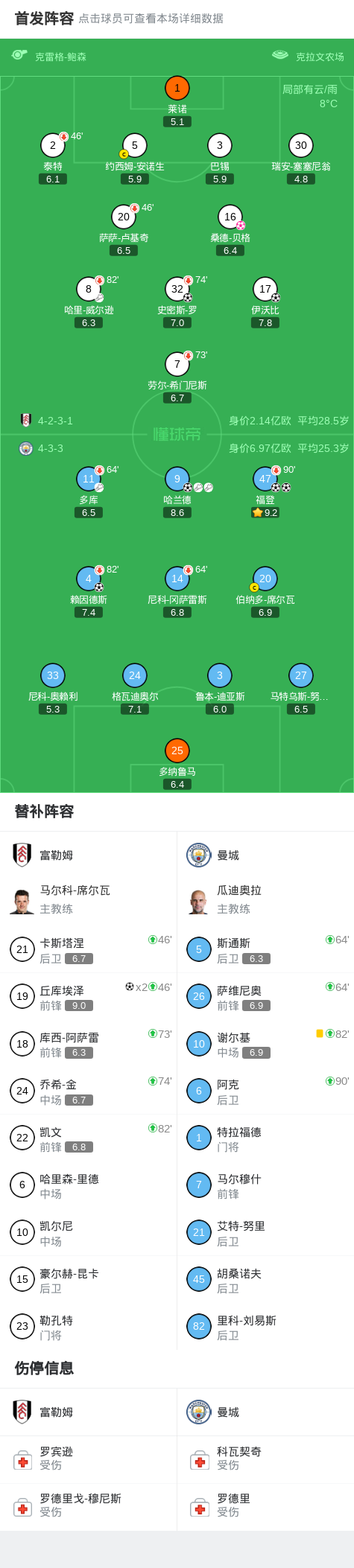第73分钟,B席解围不远,丘库埃泽抽射破门,富勒姆3-5